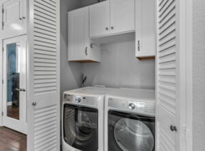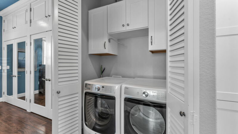 - Built-in overhead cabinetry in laundry center