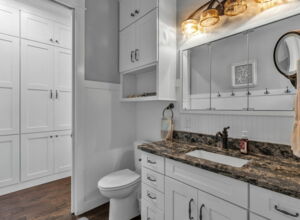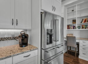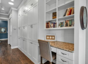 - Custom floor to ceiling cabinetry throughout home, extensive storage including “wall of cabinets”, lower sliders in pantry and kitchen cabinets. All cabinets equipped with “soft-close” hardware on drawers and doors