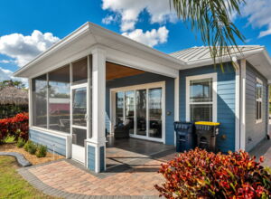 - Full 4-panel, bi-directional, Hi-e sliding glass doors into home