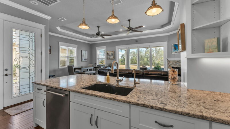 - Home backs up to Lake Mattie with permanent green space buffer (direct water view)