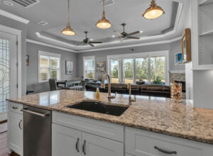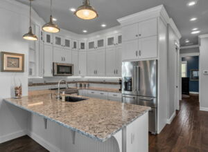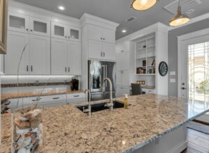 - All counter tops are custom “Blanco”, heavy grade quartz (1-1/4” thick) composite undermount kitchen sink