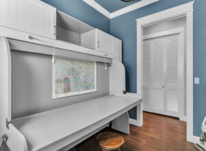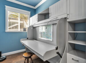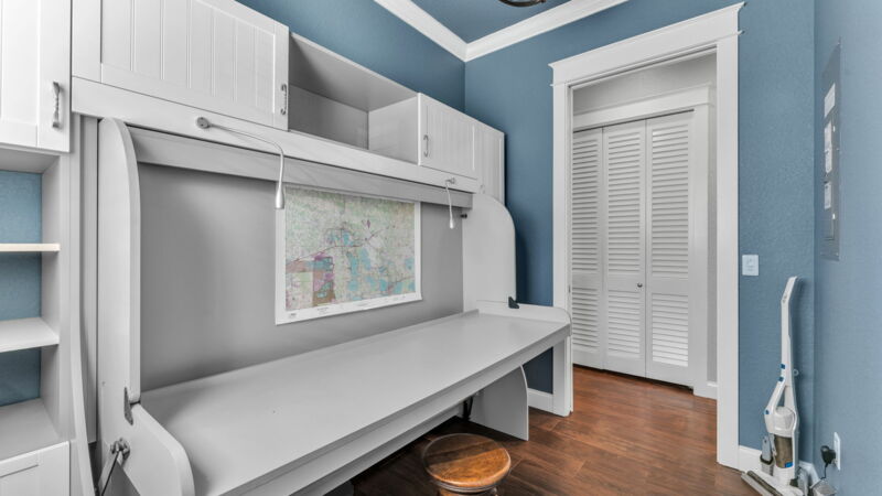 - 9ft, custom built-in Murphy bed/Desk, w/ integral surround w/ bookcase, storage and filing cabinets in second bedroom