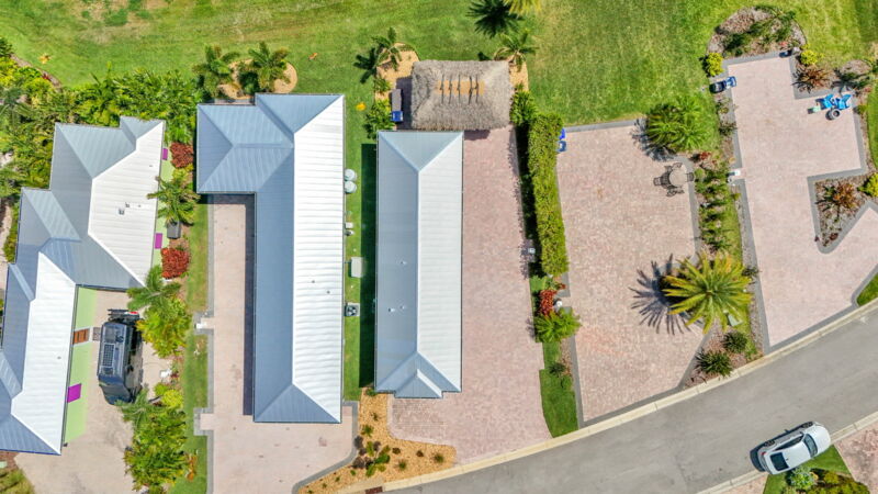 Check out this newly listed custom built Casita with a pull-in 1940 sq ft Paver Pad and 10' x 16' Tiki Hut. It is the cutest combination of Key west vibes and luxury resort living! Beautifully designed and finished, this 761 sq ft casita is your ticket to fun in the Florida sun!